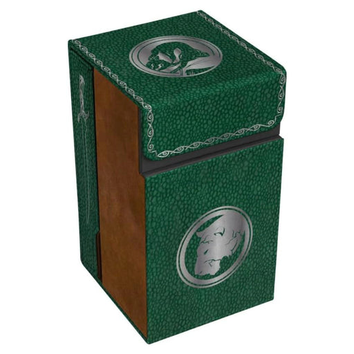 View full detailsAcest dice tower are un exterior din piele ecologica in nuante de verde salvie si maro, cu accente metalice argintii si folie. Este captusit cu pie...
