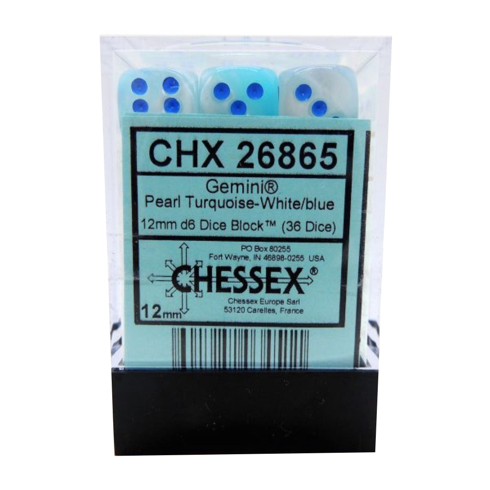 Set 36 Zaruri Gemini 12mm d6 Pearl Turquoise-White/blue Luminary