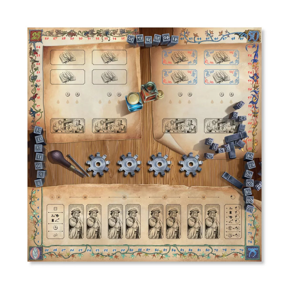 Prin licitarea pentru actiuni specifice, jucatorii isi vor dezvolta atelierul, vor dobandi noi fonturi, cerneluri si decoratiuni. Sistemul unic de angrenaje rotative va permite sa combinati bonusuri si sa castigati un numar mare de puncte.