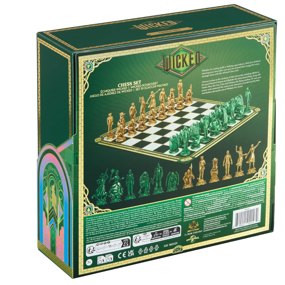 Acest set include 32 de piese de joc modelate dupa personajele tale Wicked preferate, finisate in auriu stralucitor pentru a reprezenta perioada lor petrecuta la Universitatea Shiz si verde smarald stralucitor pentru a reprezenta personalitatea lor din Wicked: For Good.