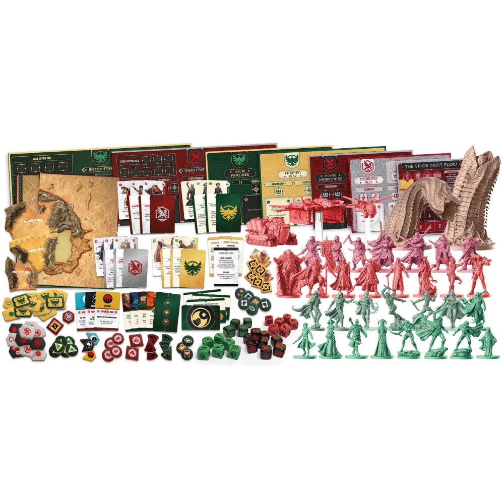 In acest joc de strategie asimetrica, jucatorii lupta pentru controlul planetei, manevrand trupele precum Fremenii, Fedaykin si temutii Sardaukar, in timp ce trimit culegatori de Spice-Melange in desertul adanc, indraznind sa provoace Marele Vierme-ale-Nisipurilor. Jocul prezinta un sistem de zaruri de actiune si numeroase carti de evenimente care vor permite jucatorilor sa povesteasca diferit saga Dune in fiecare sesiune de joc.