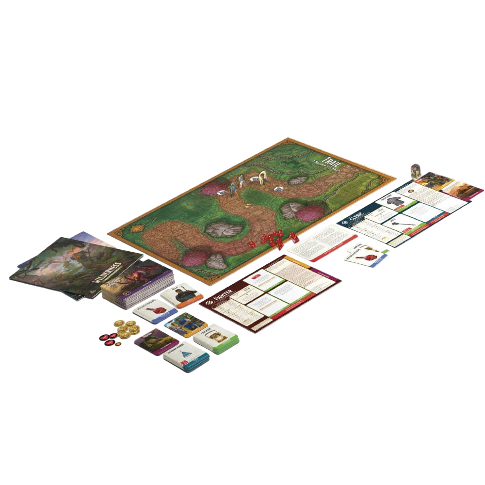 Continut: 3 brosuri cu zeci de intalniri, 8 tabele cu clasele personajelor cu roluri D&D iconice, 1 ghid cu reguli rapide si brosura de referinta, 5 materiale informative captivante despre lumea din jur (meniu, ghiduri ale magazinului), 9 harti poster fata-verso, 1 tracker de lupta, 11 zaruri, 210 carti (vraji, echipament, monstri si multe altele), 273 tokens (monstri, teren, obiecte).