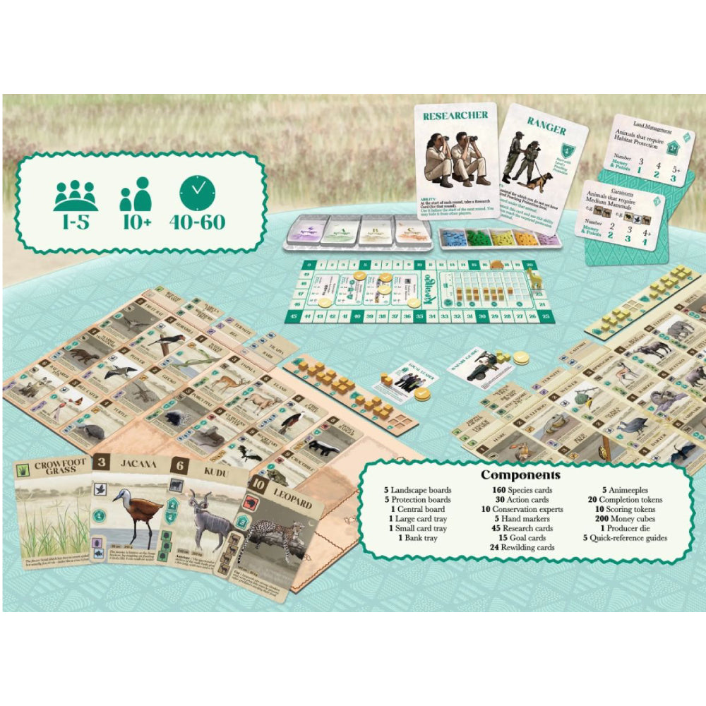Calatoreste in vasta salbaticie din Africa de Sud si intra in rolul unui Expert in Conservare. Porneste intr-o calatorie de re-salbaticire in timp ce iti transformi propriul peisaj unic intr-o rezervatie naturala infloritoare. De-a lungul a trei runde rapide de ture simultane si selectie de carti, vei construi un ecosistem infloritor. Pe masura ce iti dezvolti rezervatia naturala, trebuie sa indeplinesti sarcini de cercetare pentru a castiga bani pe care sa ii investesti in protectie si pentru a oferi un refugiu animalelor vulnerabile si pe cale de disparitie. Pe masura ce jocul progreseaza, alegerile tale devin mai dificile, iar strategia mai complexa, in timp ce te straduiesti sa construiesti rezervatia naturala cu cel mai mare scor.