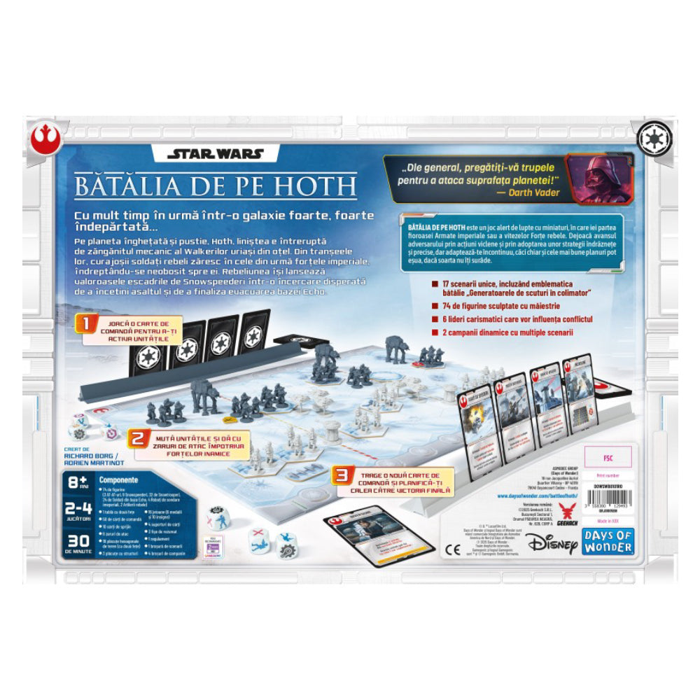 Star Wars: Batalia de pe Hoth este un joc de batalii eroice si rapide cu miniaturi, care are loc pe planeta de gheata Hoth si reconstituie una dintre cele mai faimoase scene din filmul Star Wars: Imperiul Contraataca.