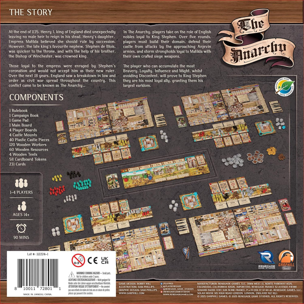 In jocul The Anarchy, jucatorii preiau rolul nobililor englezi loiali regelui Stephen. Pe parcursul a cinci runde, jucatorii trebuie sa-si construiasca domeniul, sa-si apere castelul de atacurile armatelor anjevine care se apropiau si sa ia cu asalt cetatile loiale Matildei cu propriile arme de asediu create. Jucatorul care poate acumula cel mai mult Curaj, Loialitate, Influenta si Putere, evitand in acelasi timp Nemultumirea, ii va dovedi Regelui Stephen ca este cel mai loial aliat al sau, acordandu-i cel mai mare titlu de comitat.