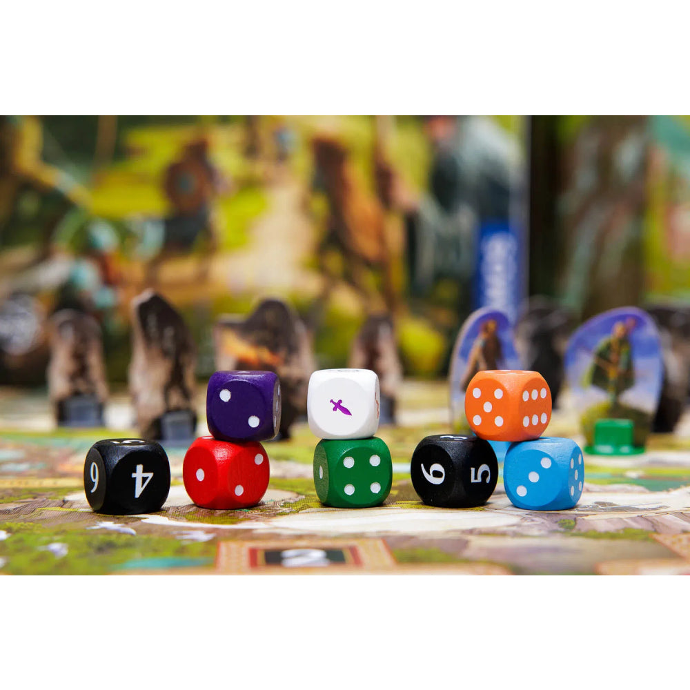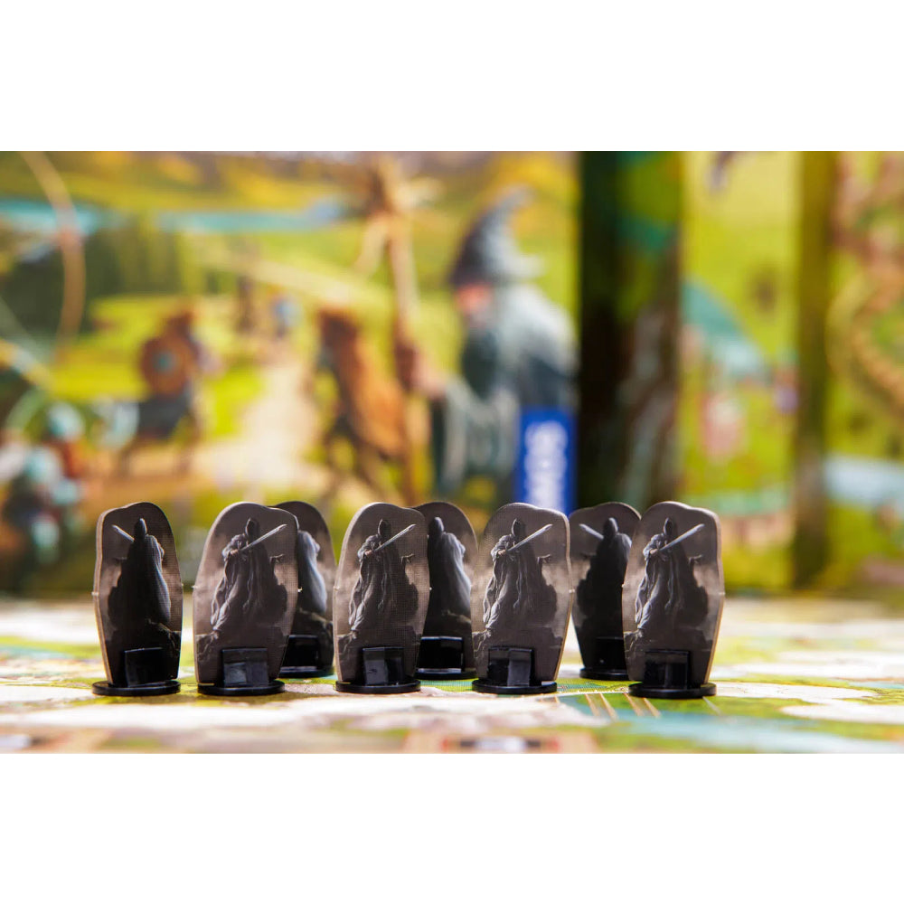 Cu o harta ilustrata superb, carte de zaruri in forma de volum deschis si intalniri tematice in fiecare etapa, jocul recreeaza momente-cheie din poveste — de la Lothlorien si Rohan, pana la Gondor, Minas Morgul si finalul incendiar al aventurii.