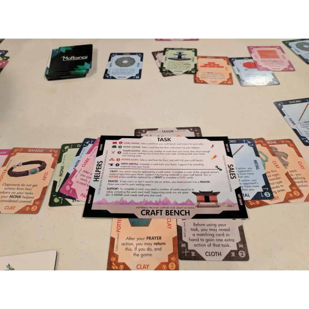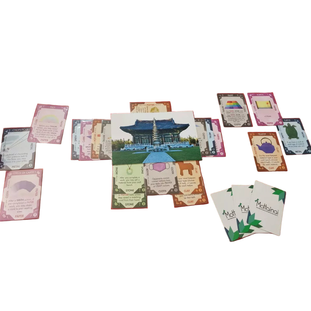 "Mottainai" inseamna "Nu risipi" sau "Fiecare lucru mic are un suflet". In jocul Mottainai, un succesor al colectiei Glory to Rome, iti folosesti cartile in mai multe scopuri. Fiecare jucator este un acolit intr-un templu care indeplineste sarcini, aduna materiale si vinde sau finalizeaza lucrari pentru vizitatori. Fiecare carte poate fi fiecare dintre aceste trei lucruri.