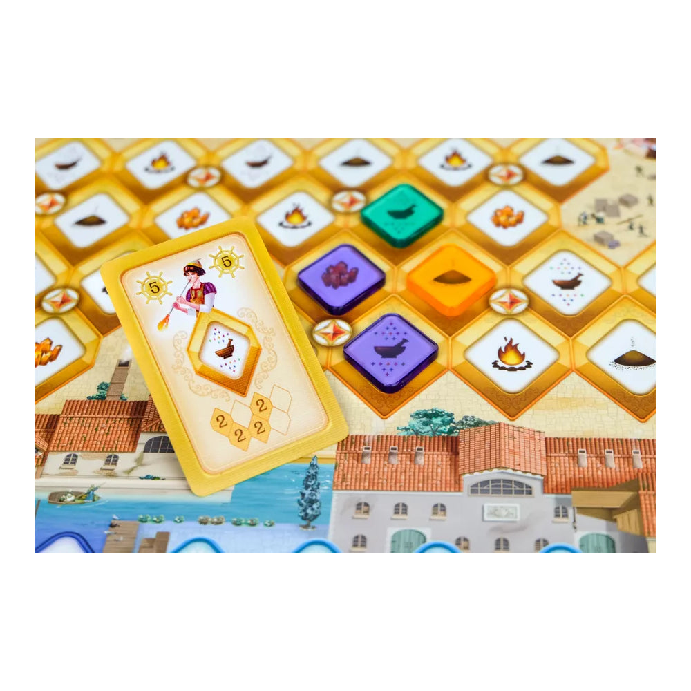Tabla de joc prezinta diferite aspecte ale ciclului de productie a sticlei: ateliere in care este creata sticla, case unde este instalata, oameni care va sprijina munca, magazine comerciale unde este vanduta si portul in care navele duc sticla in locatii indepartate. Vrei sa fii prezent in toate aceste domenii, de preferinta la momentul potrivit pentru a-ti maximiza castigurile. Tabla de joc are 109 spatii, cu cate o carte in pachet pentru fiecare dintre aceste spatii.
