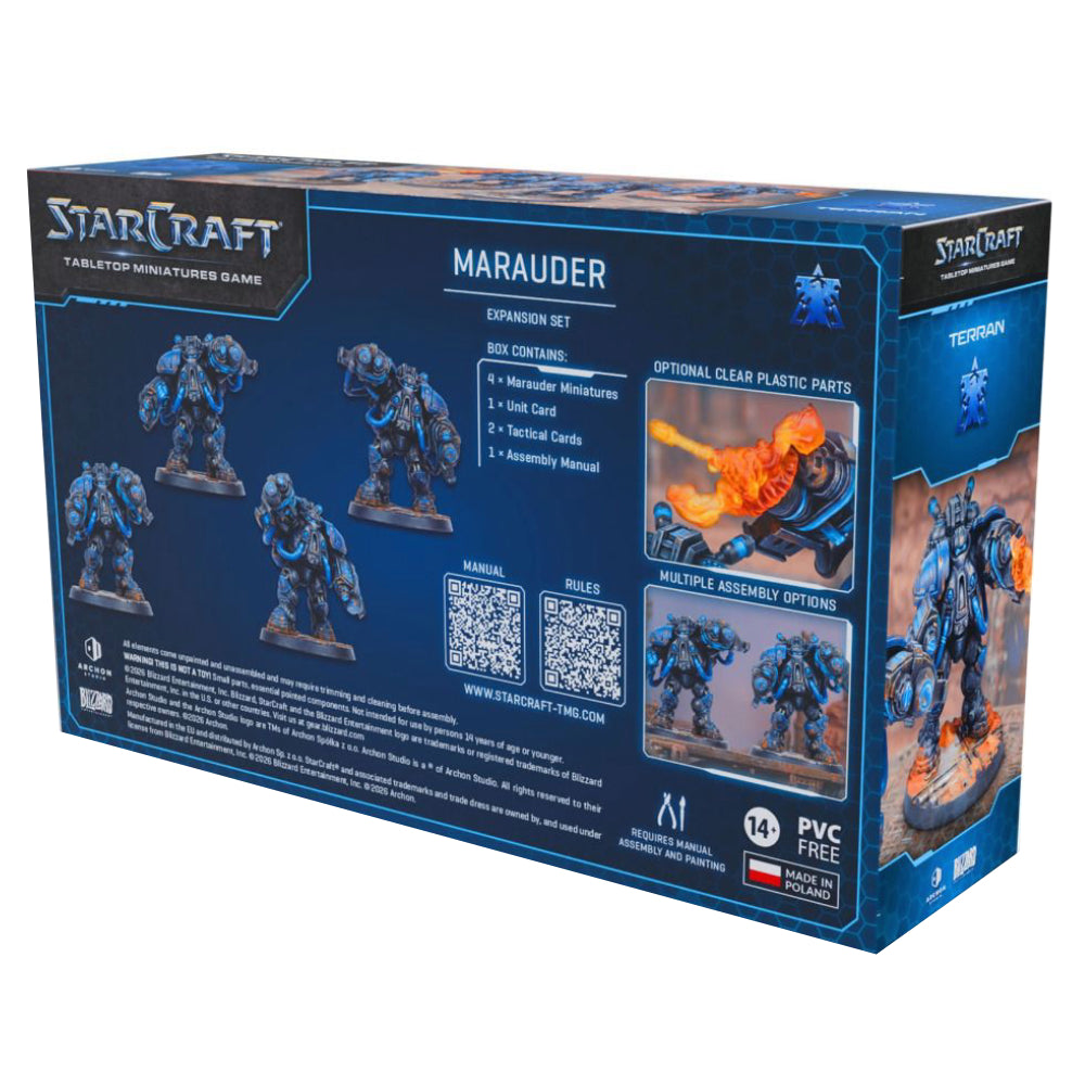 Marauder - Terran - Expansion Set necesita jocul de baza StarCraft The Miniatures Game - Protoss Starter Set Founders Edition sau StarCraft The Miniatures Game - Two Player Starter Set Founders Edition.