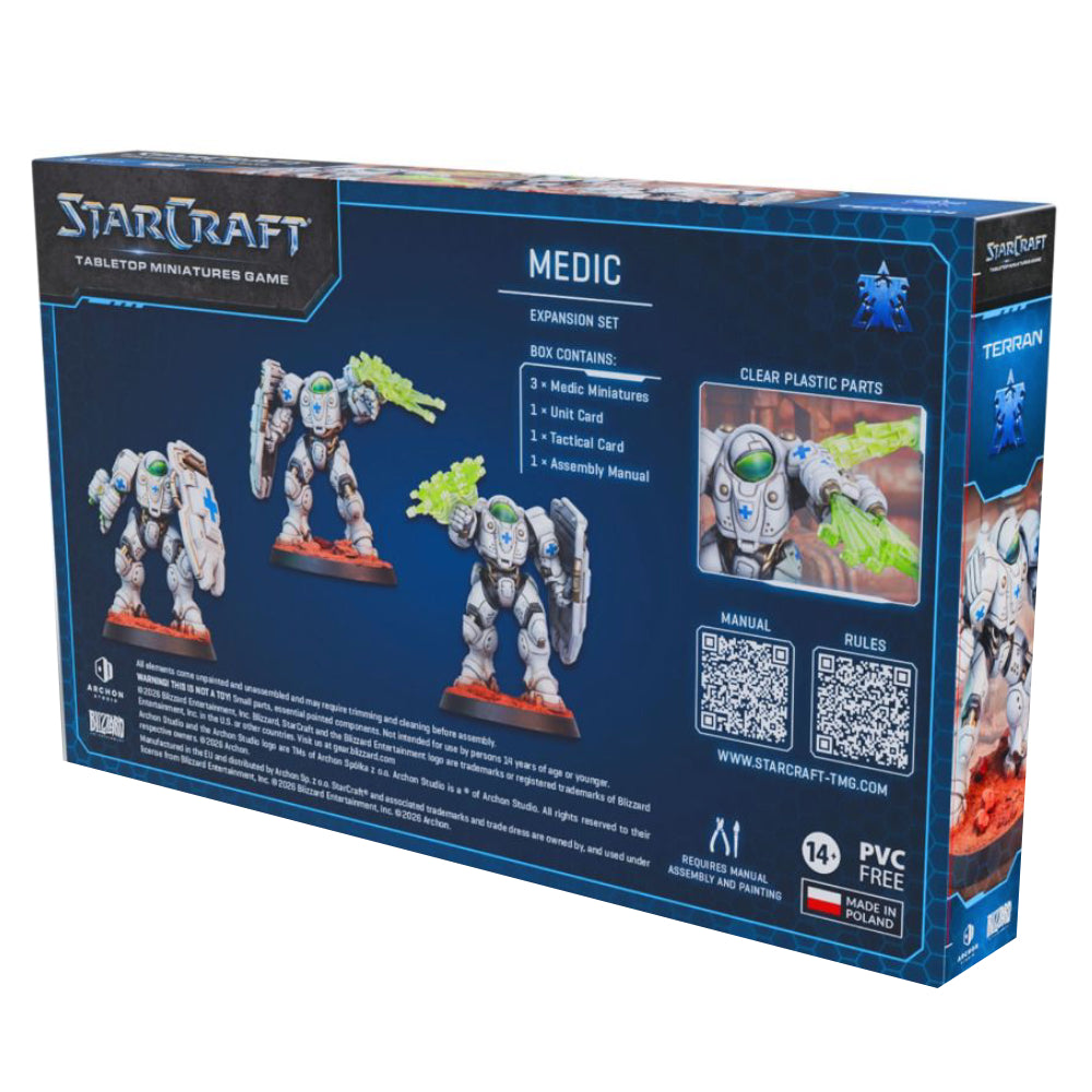 Medic - Terran - Expansion Set necesita jocul de baza StarCraft The Miniatures Game - Protoss Starter Set Founders Edition sau StarCraft The Miniatures Game - Two Player Starter Set Founders Edition.