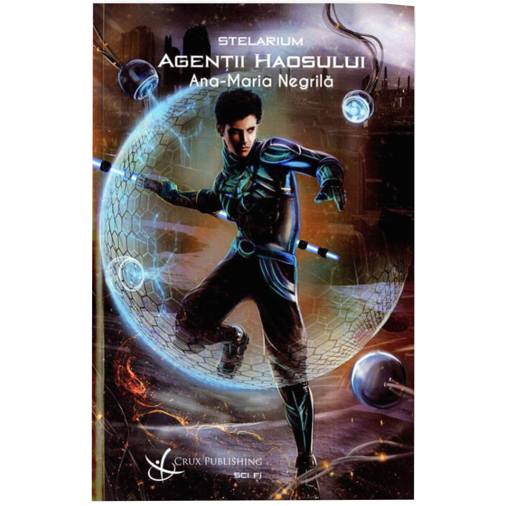 Straini in Regat si in noua retea de energie a planetei, controlata de un adversar redutabil, cei patru trebuie sa se strecoare si prin plasa de minciuni atent tesuta de cei pe care ii credeau prieteni. Confruntati cu noi dusmani, incercand sa isi gaseasca alti aliati, cei patru agenti anh se lupta acum pentru supravietuire. Eroi pentru unii, paria pentru altii, greu de manipulat si stapanit, protagonistii seriei Stelarium au parte in acest volum de o ultima si aproape apocaliptica aventura. Un joc al oglinzilor in care nu mai stii in cine sa crezi, o confruntare a anti-eroilor impotriva unor antagonisti detestabili dar si ai unor anti-antagonisti fascinanti, Agentii haosului ofera probabil una dintre cele mai intense puncte culminante din literatura science-fiction contemporana, impreuna cu un mesaj ce transcende spatiul si timpul: chiar si intr-o lume post-umana ne putem pastra si cultiva umanitatea atata timp cat ramanem fideli unor valori atemporale, precum onoarea, curajul, adevarul si justitia.