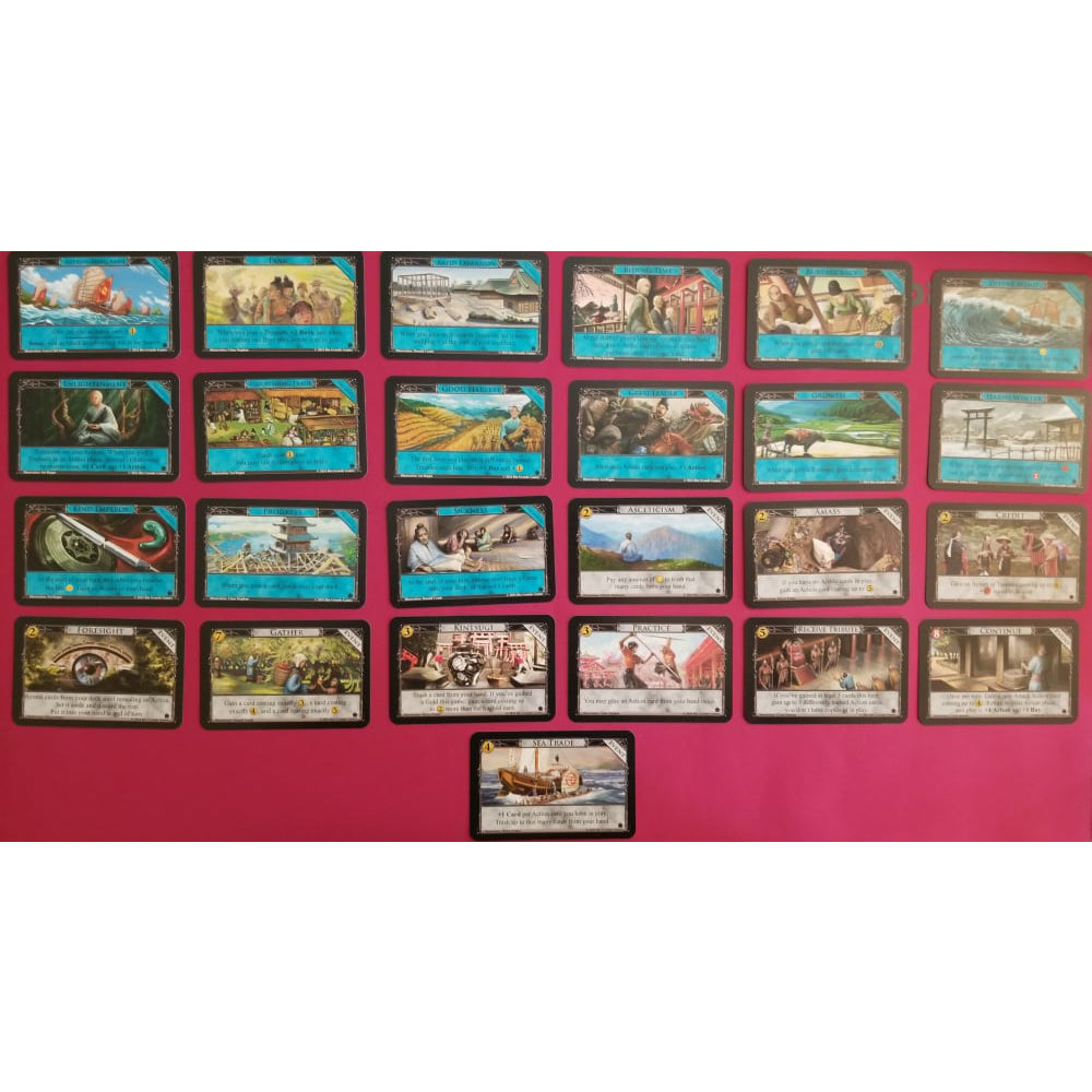 Dominion Rising Sun aduce mecanica clasica de deck-building intr-o lume inspirata de Japonia feudala. Incepi cu o mana simpla de carti si "cumperi" altele din teancul central pentru a-ti construi un pachet unic. Gestioneaza-ti cartile cu grija pentru a acumula puncte de victorie si a-ti intari regatul. Cu mecanici noi precum carti cu efecte "Onoare" si "Datorie", jocul adauga profunzime strategica si o poveste captivanta.