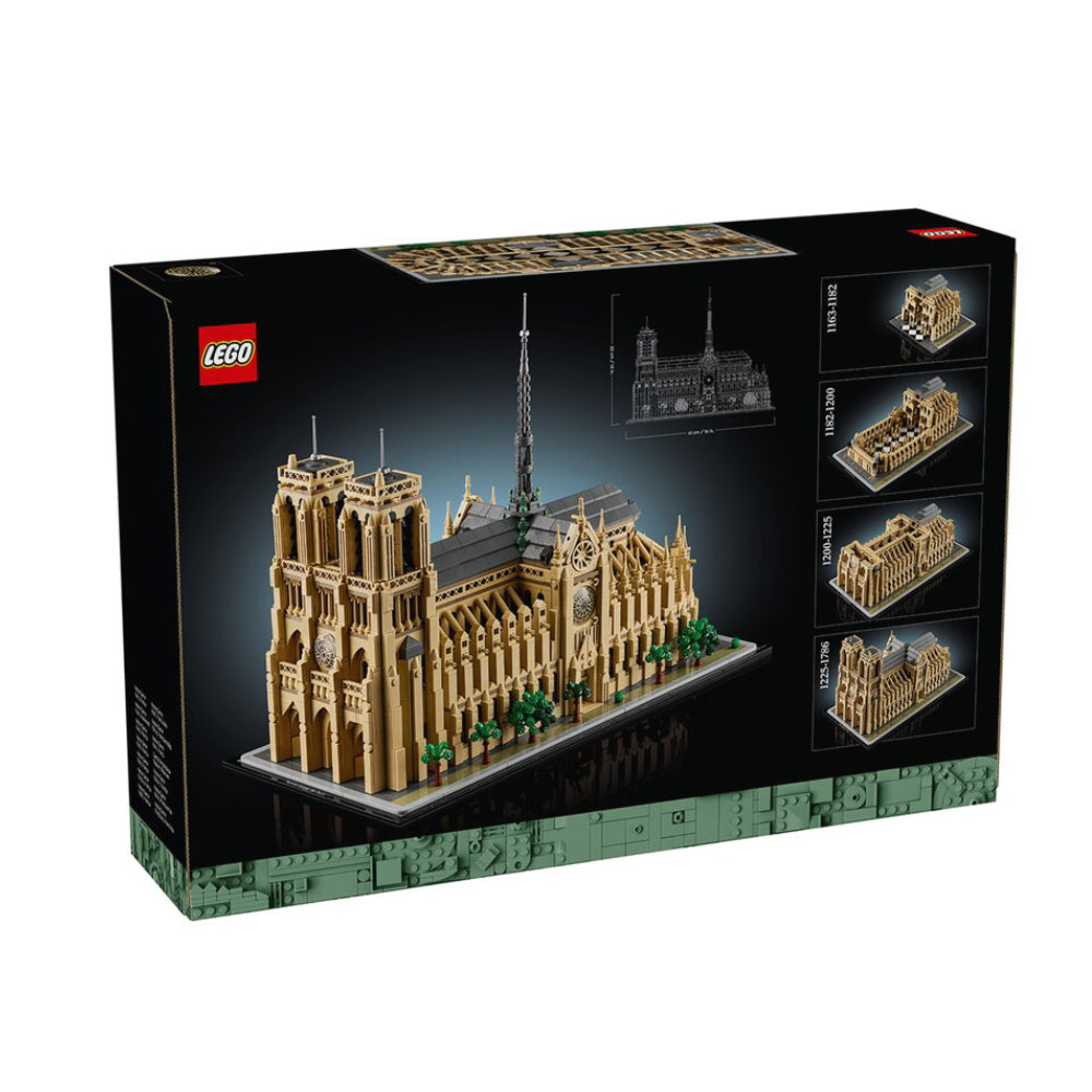 Acest kit cu model arhitectural te poarta intr-o calatorie a constructiei istorice care incepe in 1163 odata cu asezarea primelor caramizi, trece prin perioada de refacere a designului, gandita de arhitectul Viollet-le-Duc in secolul al XIX-lea si ajunge la structura maiestuoasa a catedralei Notre-Dame inainte de incendiul din 2019.