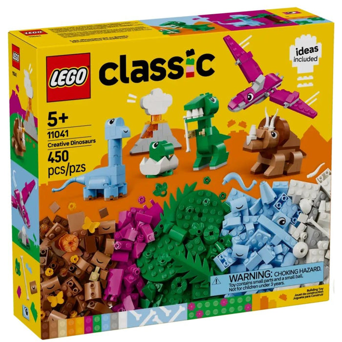 LEGO Classic Dinozauri creativi (11041) este o jucarie cu dinozauri pentru copii, cu figurine din caramizi in culorile albastru, verde, violet si maro. Acest set de constructie mereu adaptabil este o jucarie excelenta pentru dezvoltarea abilitatilor creative de constructie la copiii de 5+ ani pasionati de dinozauri.