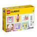 Acest kit de construit creativ contine 333 de caramizi intr-o varietate de forme, marimi si culori pastel. 18 dintre caramizi prezinta ochi expresivi pe care copiii ii pot folosi pentru a-si insufleti creatiile. Sunt incluse instructiuni de construit printate pentru 5 modele usor de asamblat: un nor, o inghetata, un dinozaur, o pisica si un robot. Pe masura ce le creste increderea in propria creativitate, copiii se pot bucura de ore intregi de constructie libera. O varianta digitala a instructiunilor de construit se regaseste in aplicatia LEGO Builder.