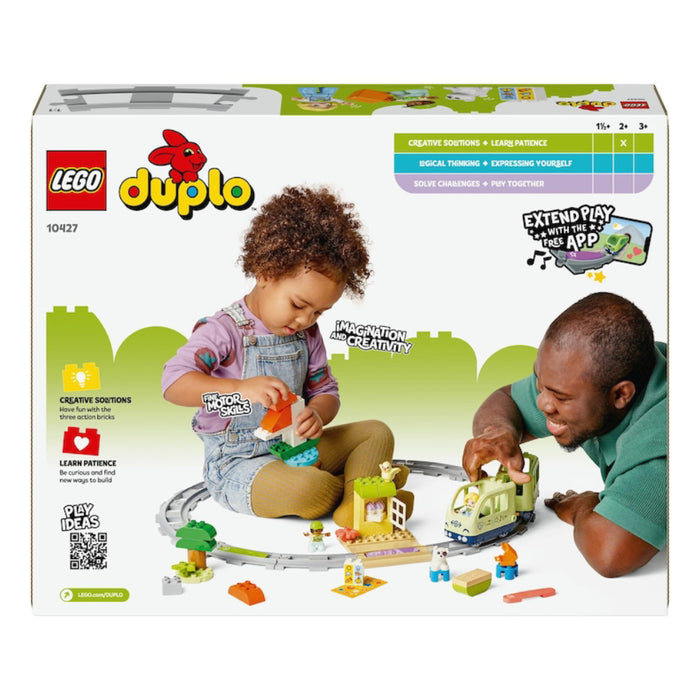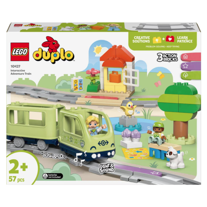 Cele 3 caramizi de actiune dau viata jocului, facand trenul sa emita sunete realiste atunci cand trece peste ele si stimuland abilitatile de previziune ale micutilor atunci cand trebuie sa ghiceasca ce sunet va scoate trenul. Cei mici pot folosi si caramida speciala de personalizare pentru a emite propriile sunete, inregistrate cu ajutorul aplicatiei gratuite LEGO DUPLO Interactive Trains, care le permite totodata sa conduca trenul folosind un dispozitiv electronic portabil.