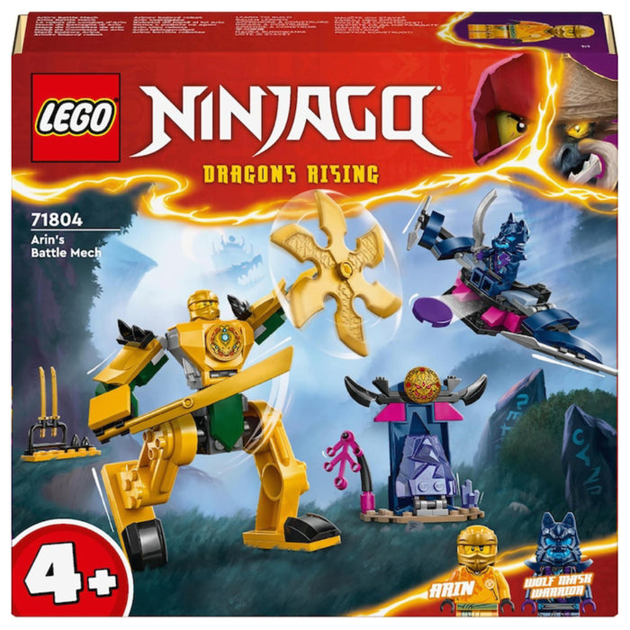 Jucaria ninja Robotul de lupta al lui Arin (71804) permite copiilor de 4+ ani sa invete sa construiasca pe masura ce se alaturi eroilor lor ninja care incearca sa-si salveze prietenii dragoni. Aceasta jucarie pentru joaca pe roluri include o figurina robot impresionanta pentru a-i inspira pe copii sa recreeze aventuri palpitante din sezonul 2 al serialului TVNINJAGO Dragons Rising.