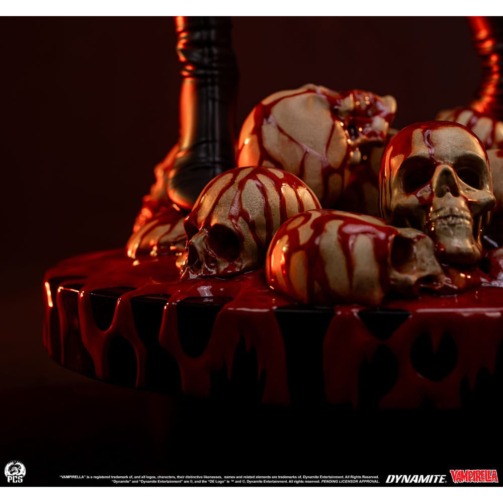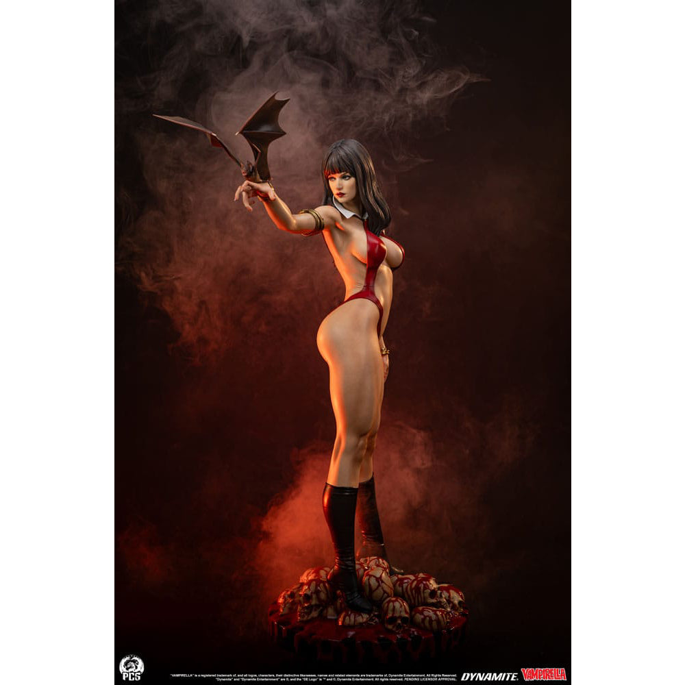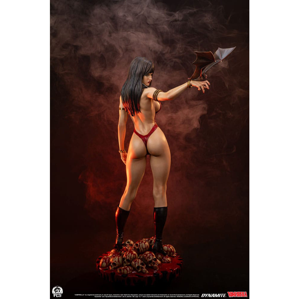 Inspirata de posterele pulp ale anilor 1970, statueta Vampirella la scara 1:2 are o inaltime de 112 cm, surprinzand perfect proportiile sale supranaturale si farmecul din alta lume. Aceasta piesa de colectie sculptata complet abunda in detalii, surprinzand musculatura supla si postura relaxata si increzatoare a personajului. Costumul de un rosu intens se remarca printr-un finisaj lucios care se impleteste cu craniile insangerate de sub cizmele ei stiletto negre.