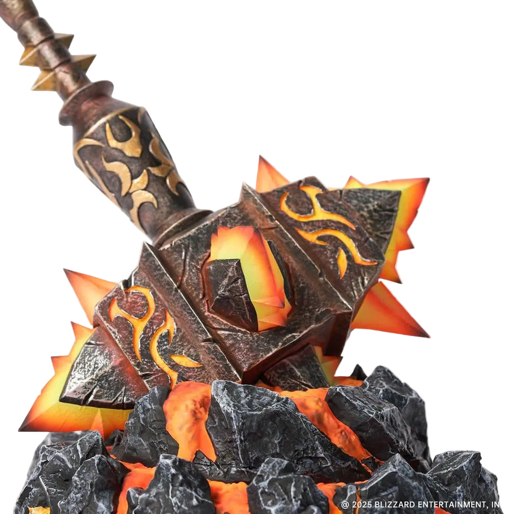 Sculptata cu detalii explozive si zimtate, aceasta replica intruchipeaza puterea bruta a lui Ragnaros. Stilul de pictura in gradient face trecerea de la un miez galben orbitor la varfuri rosii arzatoare, recreand aspectul dee lava topita.