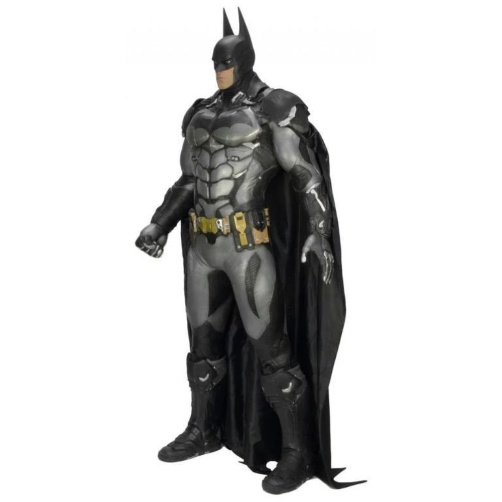 Cu o inaltime de 1,90 m, Batman a fost creat direct din fisierele digitale utilizate la realizarea jocului. Figurina este realizata din cauciuc spumat si latex, pictata manual cu atentie la detalii, iar tusa finala este pelerina din material textil a Cavalerului Intunecat, croita din materiale mixte pentru acuratete.