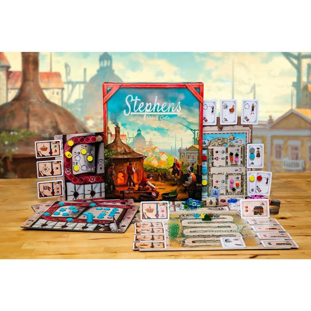 In Stephens, jucatorii concureaza intre ei insusindu-si rolul de maestri sticlari care lucreaza la faimoasa Fabrica "Stephens" pentru a deveni cea mai prestigioasa personalitate din oras... dupa Stephens, desigur. Printr-o planificare inteligenta si vicleana, toti jucatorii isi vor dezvolta lucrarile, vor investi in afaceri noi si vor promova crearea de locuri de munca. Printr-un mecanism unic de selectie a actiunilor, jucatorii aleg la randul lor dintr-o varietate de optiuni, fie prin activarea fabricii Stephens, fie prin activarea uneia dintre investitiile lor personale.