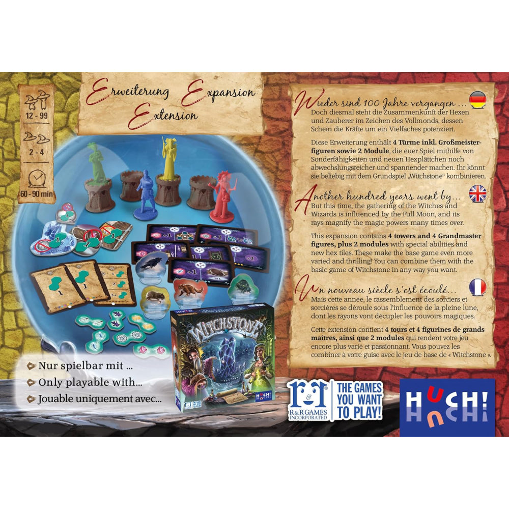 Expansiunea Witchstone: Full Moon include doua module de expansiune care pot fi folosite individual sau impreuna, unul dintre ele prezentand noi placute de cazan pentru reactii in lant mai bune, miniaturi 3D, si carti speciale noi care, printre altele, va permit sa activati una dintre cele doua abilitati speciale in fiecare runda.