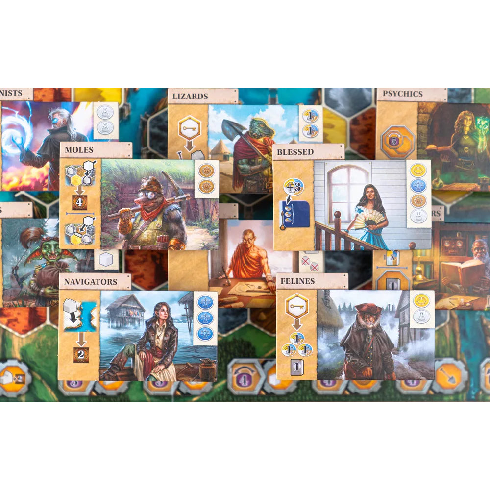 Douasprezece factiuni, fiecare cu caracteristici unice, populeaza aceasta lume cu terenuri variate. Aici vei concura pentru a construi cladiri si a le integra in orase. Fiecare joc iti permite sa creezi noi combinatii de factiuni, patrii si abilitati, astfel incat fiecare joc sa fie diferit.