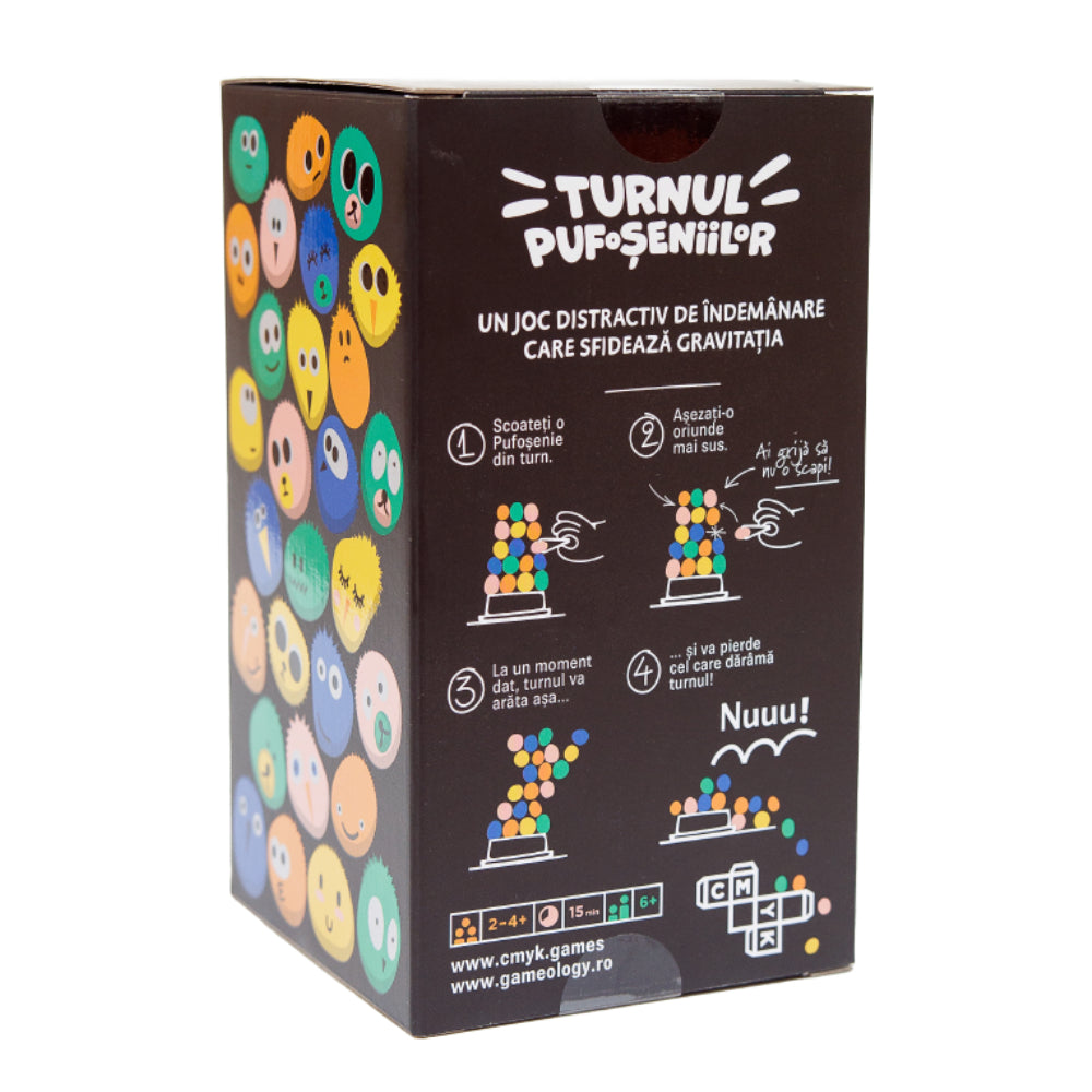 Turnul Pufoseniilor este un joc captivant care combina dexteritatea si strategia intr-un mod plin de culoare si veselie. Ideal pentru serile petrecute impreuna cu familia sau prietenii, acest joc va provoaca sa construiti si sa mentineti un turn stabil din piese moi si colorate, numite Pufosenii, fara a-l prabusi.