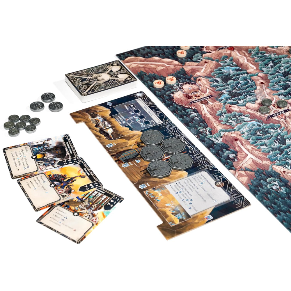 Ironwood este un joc tactic bazat pe carti cu reguli simple, extrem de asimetric, pentru 1-2 jucatori. In fiecare runda, tu si adversarul tau jucati pe rand un total de 3 carti specifice factiunii pentru efectele lor de actiune. Aceste efecte includ pozitionarea trupelor de razboi, initierea luptei, extragerea de cristale, acordarea de efecte pasive temporare si multe altele. Cand are loc confruntarea, vei folosi aceleasi carti pentru valorile lor de lupta, intr-o incercare simultana de a obtine bonusuri de lupta, de a provoca si respinge victimele si de a creste valoarea de Dominanta a trupelor de razboi pentru a castiga lupta.