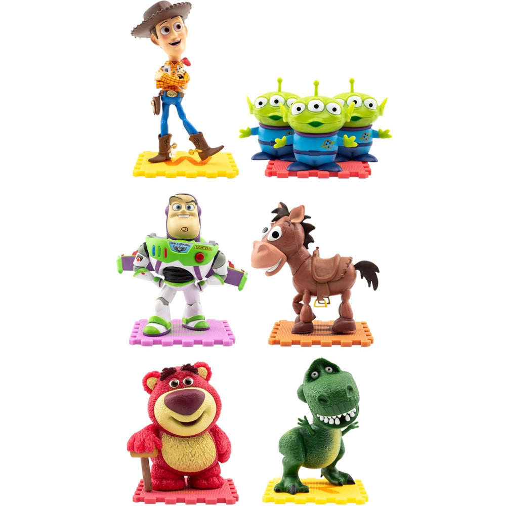 Colectioneaza toate cele sase figurine: Woody, Buzz Lightyear, Bullseye, Rex, Lots-O-Bear, Aliens.