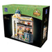 Fiecare perete din spate este conceput sa se deschida si sa se inchida pentru acces facil la spatiile tematice. Usa laterala pliabila din sticla ofera o vedere laterala completa a cladirii si a instalatiei florale mari.