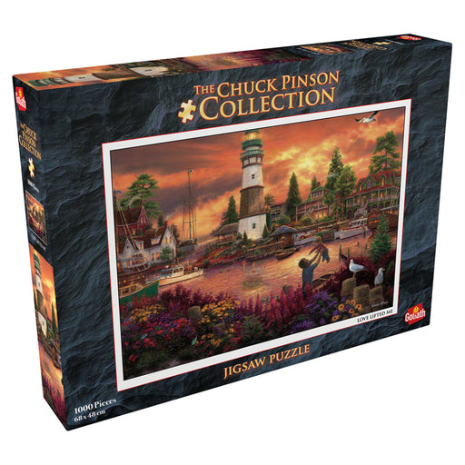 GoliathIn stocPuzzle Chuck Pinson - Dragoste pana la cer surprinde farmecul unui apus plin de emotie, unde farul vegheaza asupra tarmului si inimile se unesc sub...