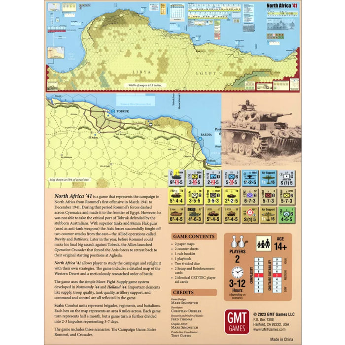 Africa de Nord '41 acopera campania din Africa de Nord, de la prima ofensiva a lui Rommel la sfarsitul lunii martie 1941 si pana la sfarsitul lui decembrie 1941. In acea perioada, fortele lui Rommel au strabatut Cirenaica si au ajuns la frontiera egipteana. Cu toate acestea, nu a fost capabil sa ocupe portul critic Tobruk aparat de australienii incapatanati. Cu tancuri superioare, o doctrina a armelor combinate si tunuri Flak de 88 mm (folosite ca arme antitanc), fortele Axei au luptat cu succes in doua contraatacuri din est - operatiunile aliate numite Brevity si Battleaxe. Mai tarziu in cursul anului, inainte ca Rommel sa poata executa asaltul planificat impotriva lui Tobruk, Aliatii au lansat Operatiunea Crusader si au condus fortele Axei inapoi la pozitiile lor initiale de la El Agheila.