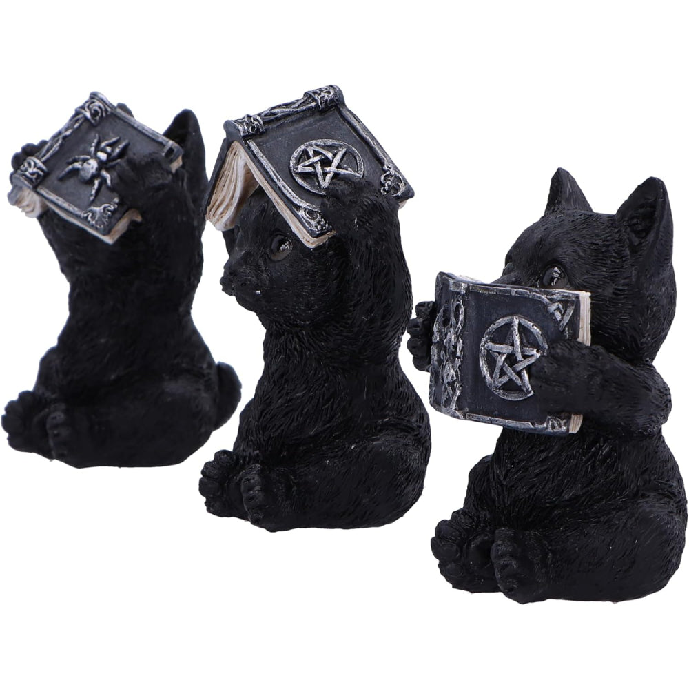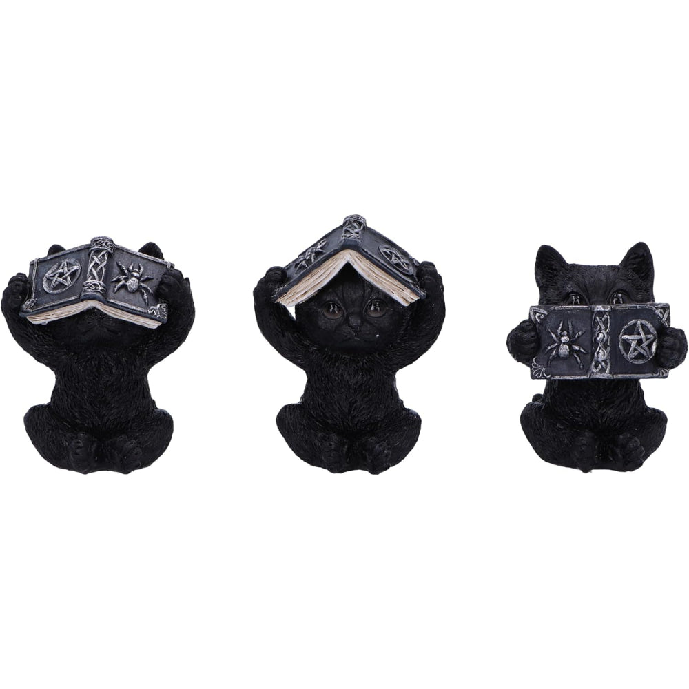 Set 3 Figurine Three Wise Witchy Black Spell Cats